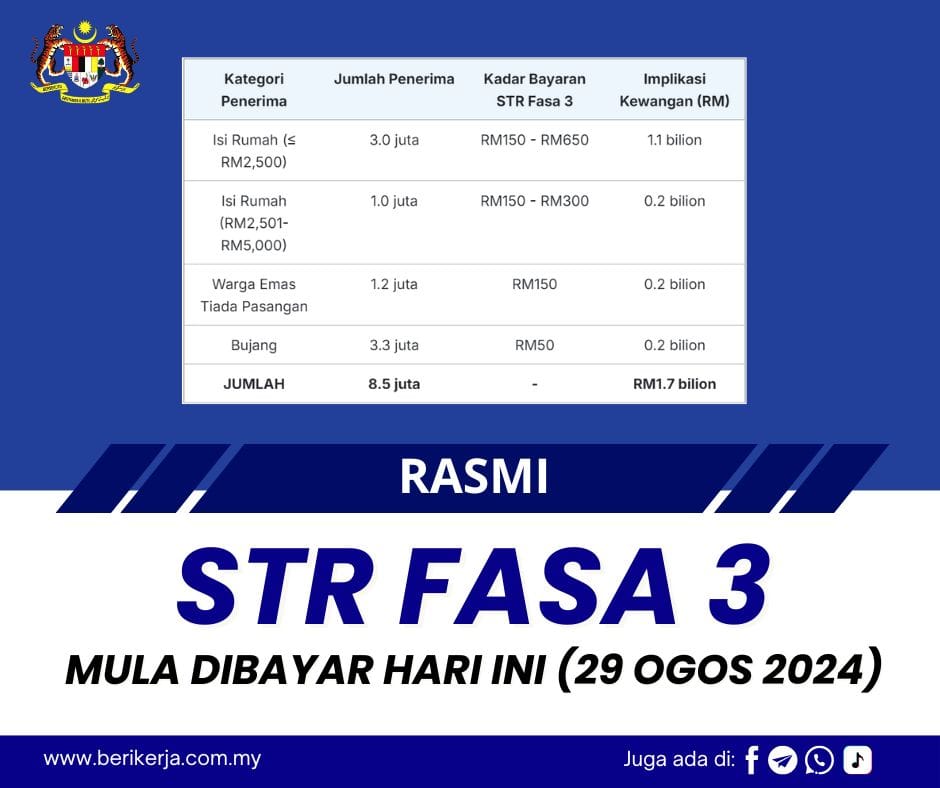 STR Fasa 3 mula dibayar hari ini (29 Ogos 2024): Jumlah bayaran untuk semua kategori penerima