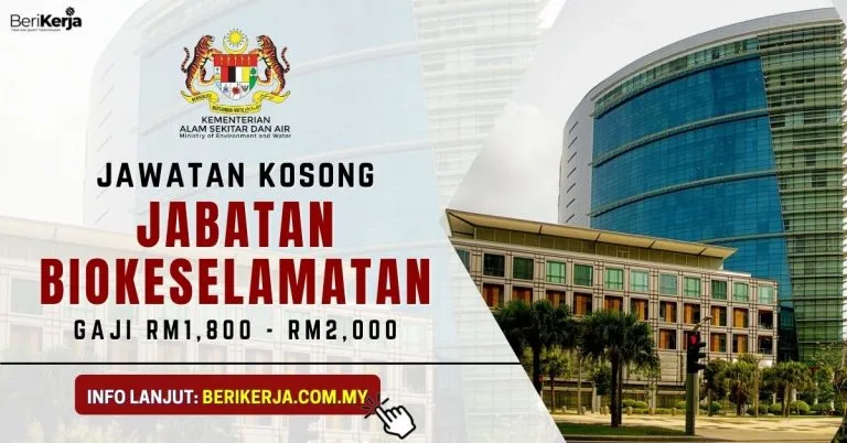 Kekosongan jawatan terkini dibuka di Jabatan Biokeselamatan: Gaji RM1,800 – RM2,000/sebulan